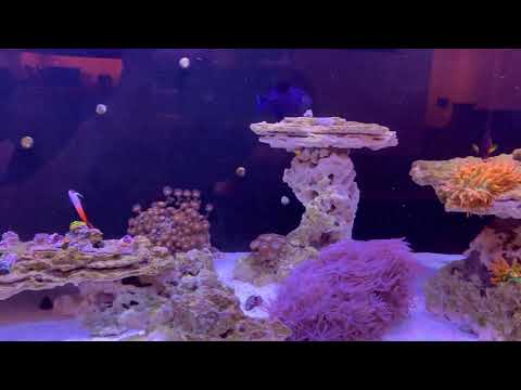 I plan to continue to slowly introduce corals and fish but currently have 7 red BTAs (and counting), a waving hand anthelia rock, the beginning of a Zoa garden (15 frags including eagle eyes, blow pops, scrambled eggs, sunbursts, pandoras, green palys, WWC mohawks, blueberry pie, and 2 “mystery” red zoas varieties), a red paly rock, a GSP rock, WWC Bling Bling and Meteor shows Cyphastrea, a green rhodactis, a candy cane frag, and a Xenia rock. As the tank continues to settle I plan to slowly add more LSP and eventually add SPS to the top of the rocks.