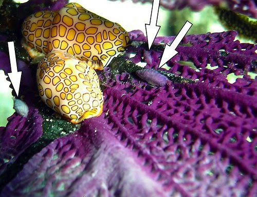 I’m so jealous. I think I’ve got about 6 different gorgonians and never got anything cool. I had a feeling it was something similar to a cowrie and it turns out it is in the “Superfamily Cypraeoidea–cowries and cowry-like animals”. I have never seen these guys before. REALLY cool find.